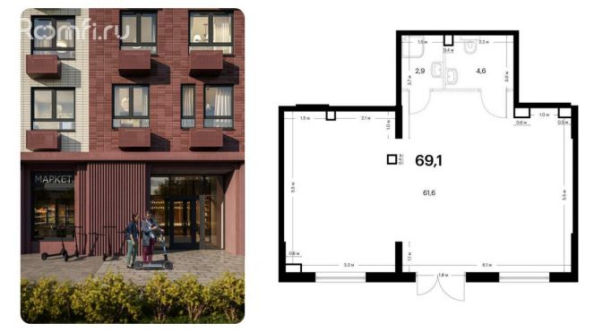 - Площадь 69.1 м²